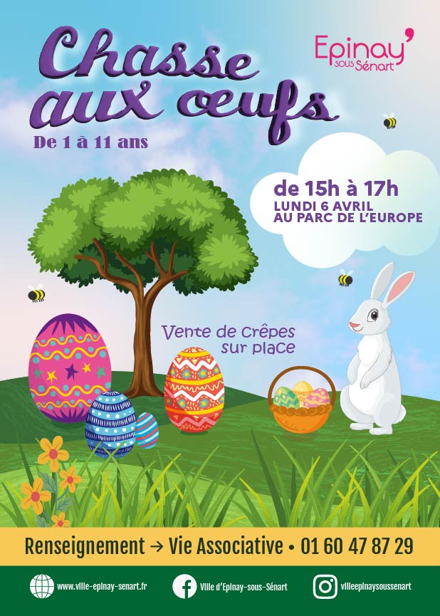 L’édition 2026 de la joyeuse Chasse aux œufs est organisée au Parc De L’Europe le 6 avril de 15h à 17h !