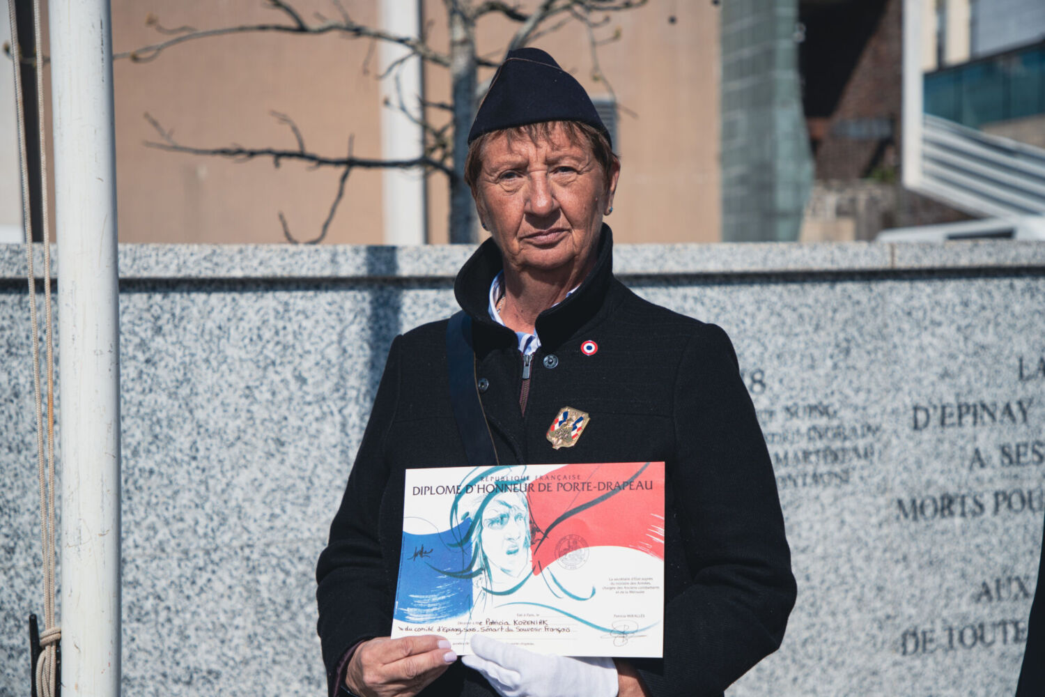 Madame Patricia Kozieniak s’est vu remettre la médaille de porte-drapeau de l'Office national des combattants et des victimes de guerre, ainsi qu’un diplôme d’honneur, distinction obtenue grâce à l’engagement de Maurice Passion, commissaire à la Flamme.